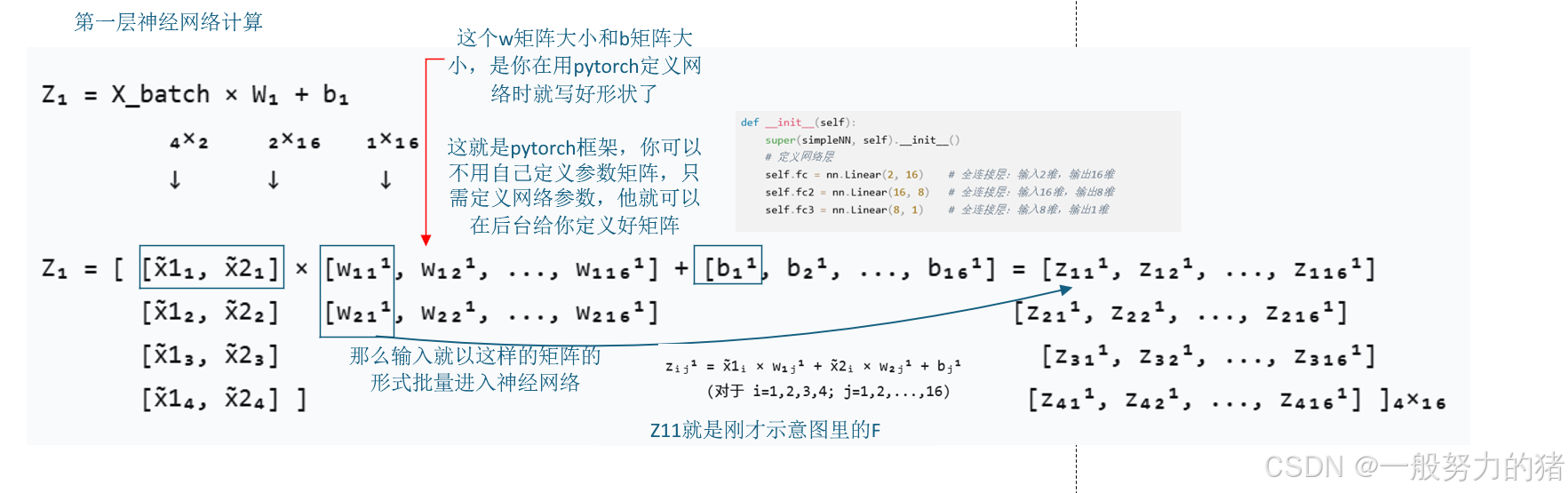 self.fc = nn.Linear(2, 16) # 全连接层:输入2维,输出16维