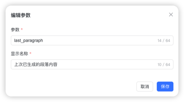 - 变量:选循环变量里的【上次已生成的段落内容({{loop.last_paragraph}})】。