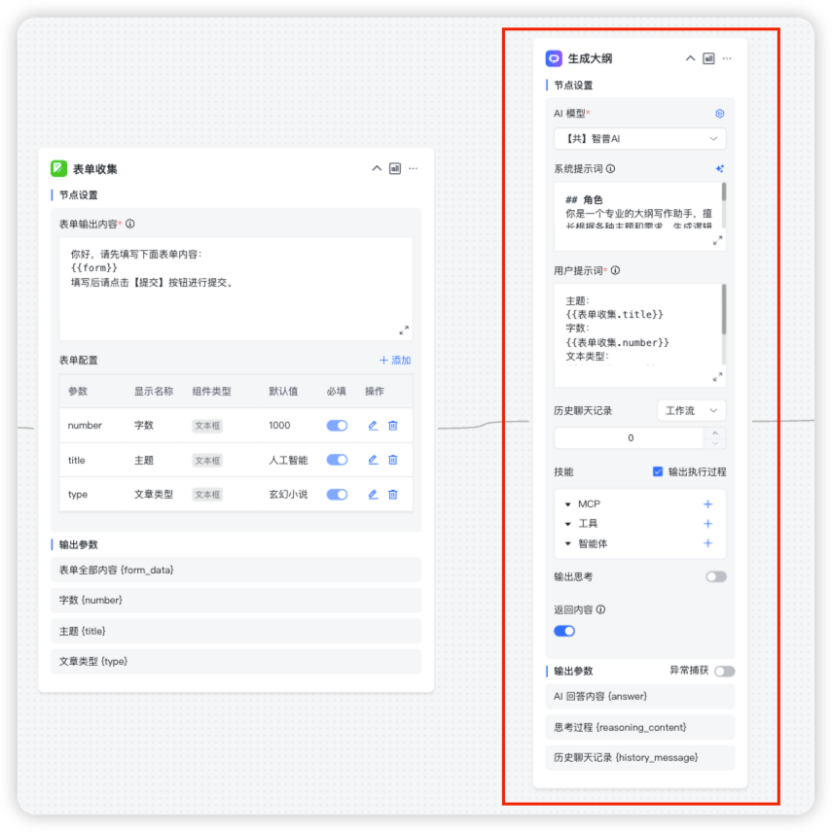 这样 AI 就能根据用户填的信息,生成专属大纲啦~