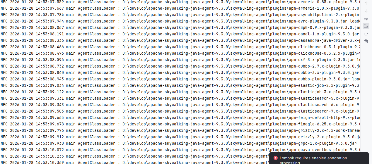 启动顺序:需先启动 SkyWalking OAP Server,再启动配置了探针的业务服务,否则业务服务的监控数据无法上报;