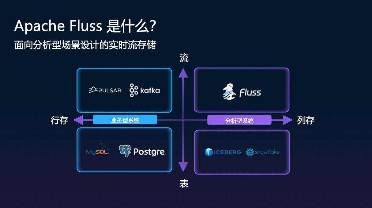 因此,Fluss 的定位非常明确:填补这个空白,做一个面向分析型场景的实时流存储系统。