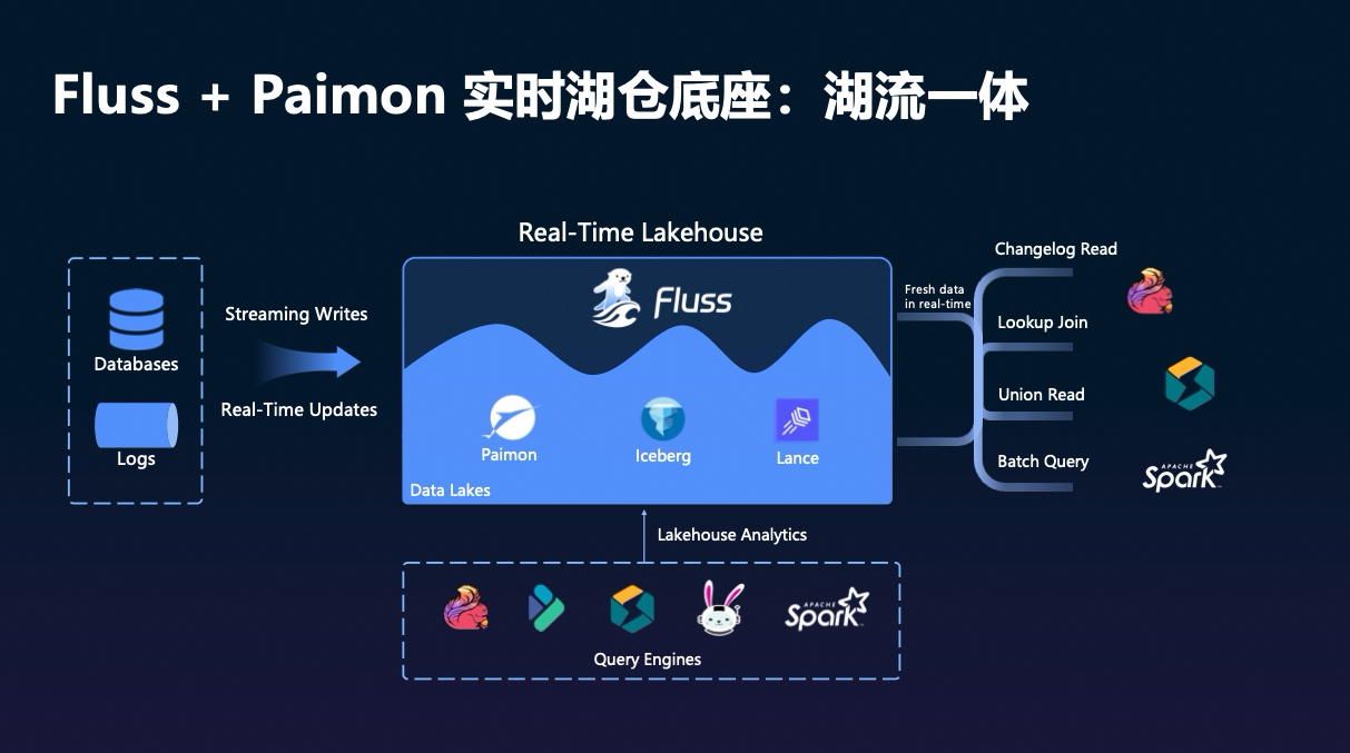 湖仓系统普遍支持行级更新(如主键 Upsert),但 Kafka 仅支持追加写入。Fluss 原生支持实时更新,并能生成完整的 Changelog,为下游提供一致的变更数据流,这是实现湖流双向融合的基础。 -