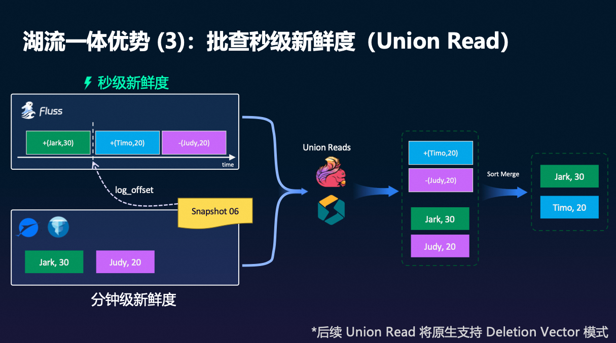 Fluss 的 Union Read 机制自动完成这一过程: