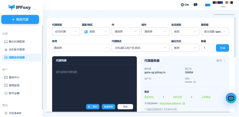 Airbnb 对访问频率和 IP 来源非常敏感,使用住宅代理可以显著降低被封风险。比较多人常用的是IPFoxy 的动态住宅代理,它可以高频自动轮转来规避反爬机制。IPFoxy能提供: