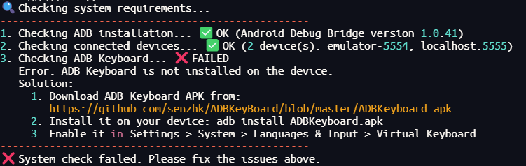 2.1 安卓设备中未安装ADB Keyboard APK