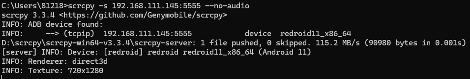 scrcpy -s 192.168.111.145:5555