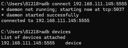 adb connect 192.168.111.145:5555