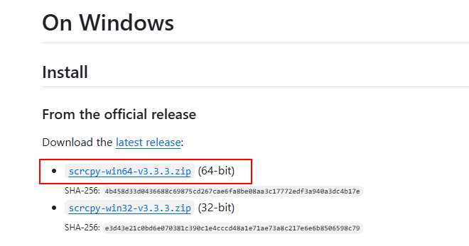 (1)下载地址:https://github.com/Genymobile/scrcpy/blob/master/doc/windows.md