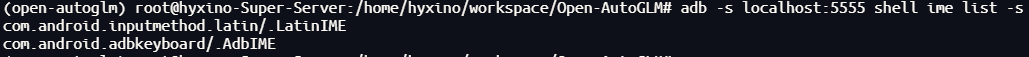 adb -s localhost:5555 shell ime list -s