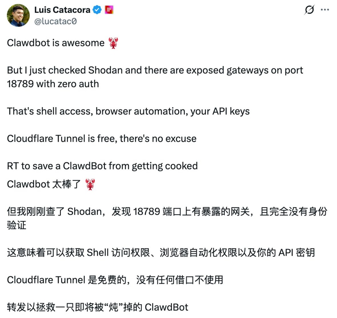 也正因为如此,Clawdbot 比 Manus 更容易让人上头:它离你的系统更近,离你的数据更近,离你的权限也更近——或许已经太近了。