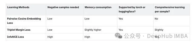 哪种方法最好?要看具体场景、数据量和算力。从我的实验来看,InfoNCE 覆盖面最广。但只要实验做得够充分、训练数据比例调得够细,余弦嵌入损失也能达到差不多的效果。三元组边距损失我没有深入探索,不过它可能是介于另外两者之间的一个折中选项。