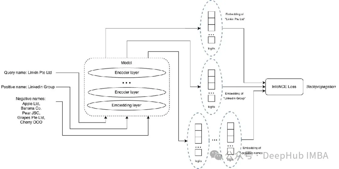 输入包括一个查询、一个正匹配、一组负样本列表。