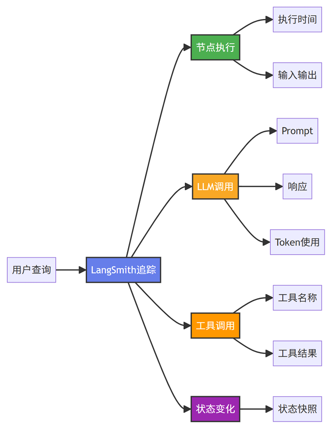 - 调试与追踪:实时追踪每个LLM 调用、工具使用和Agent 决策过程,帮助快速定位问题。