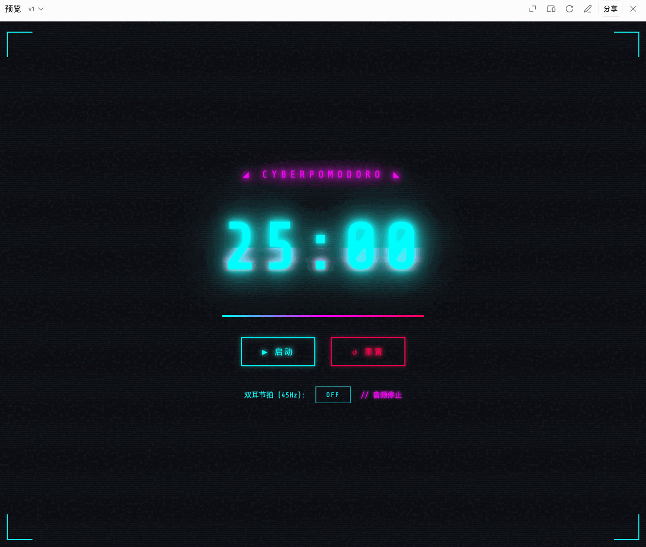 刚好我有个 idea 想试试,做一个 赛博朋克风格的番茄钟。