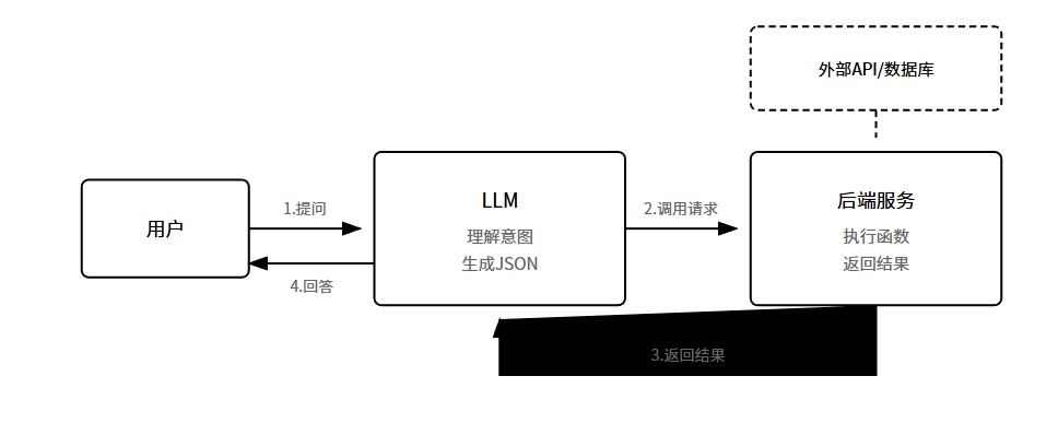 重点来了。模型并不真的执行函数,它只是生成调用请求。真正执行的是你的后端代码。