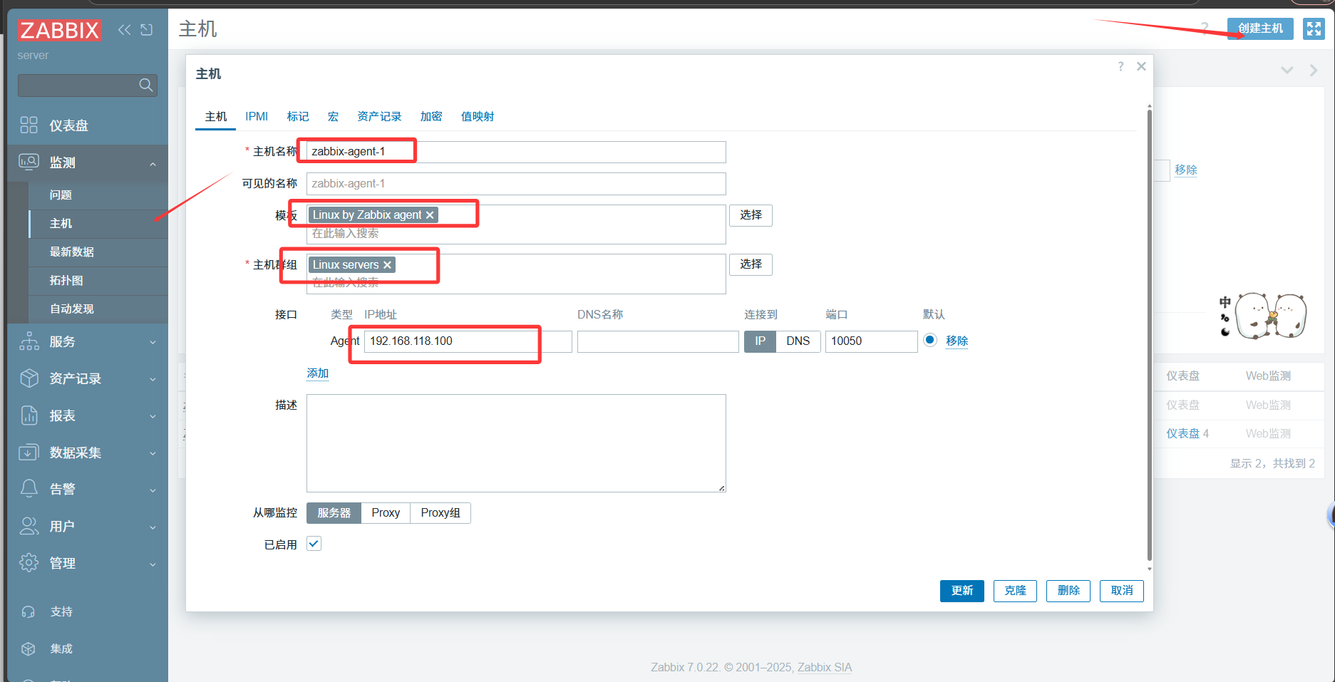 12.在Zabbix Web UI 中添加该主机