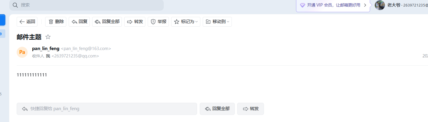 [root@zabbix-server ~]# echo "111111111111"|mail -s "邮件主题" 269721235@qq.com