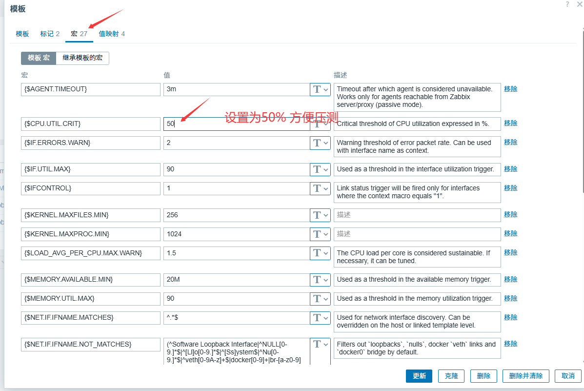 更改监控cpu率到达50%触发告警