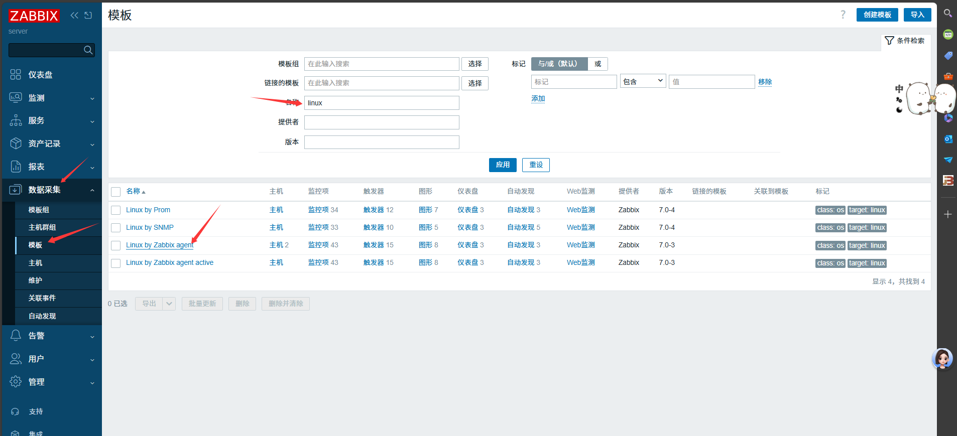 Web 配置 + 监控:通过浏览器访问 Zabbix Web 完成初始化,关联主机与系统模板,配置告警(如邮件通知)。