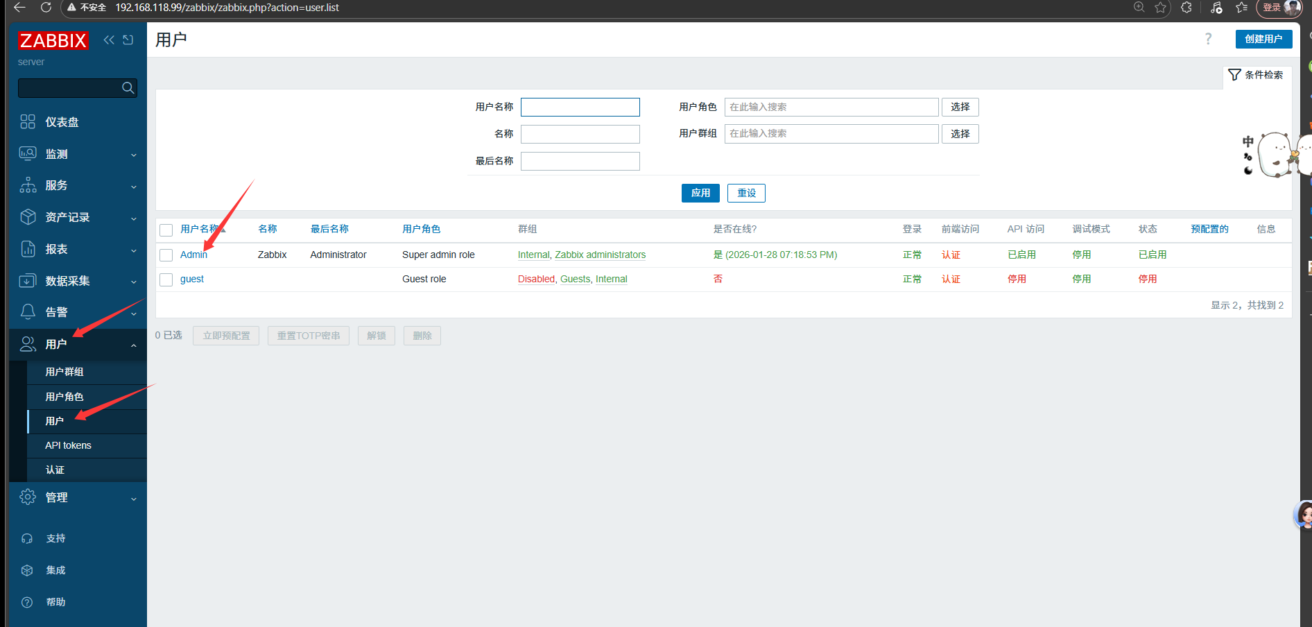 10.访问前端网页http://192.168.118.99/zabbix