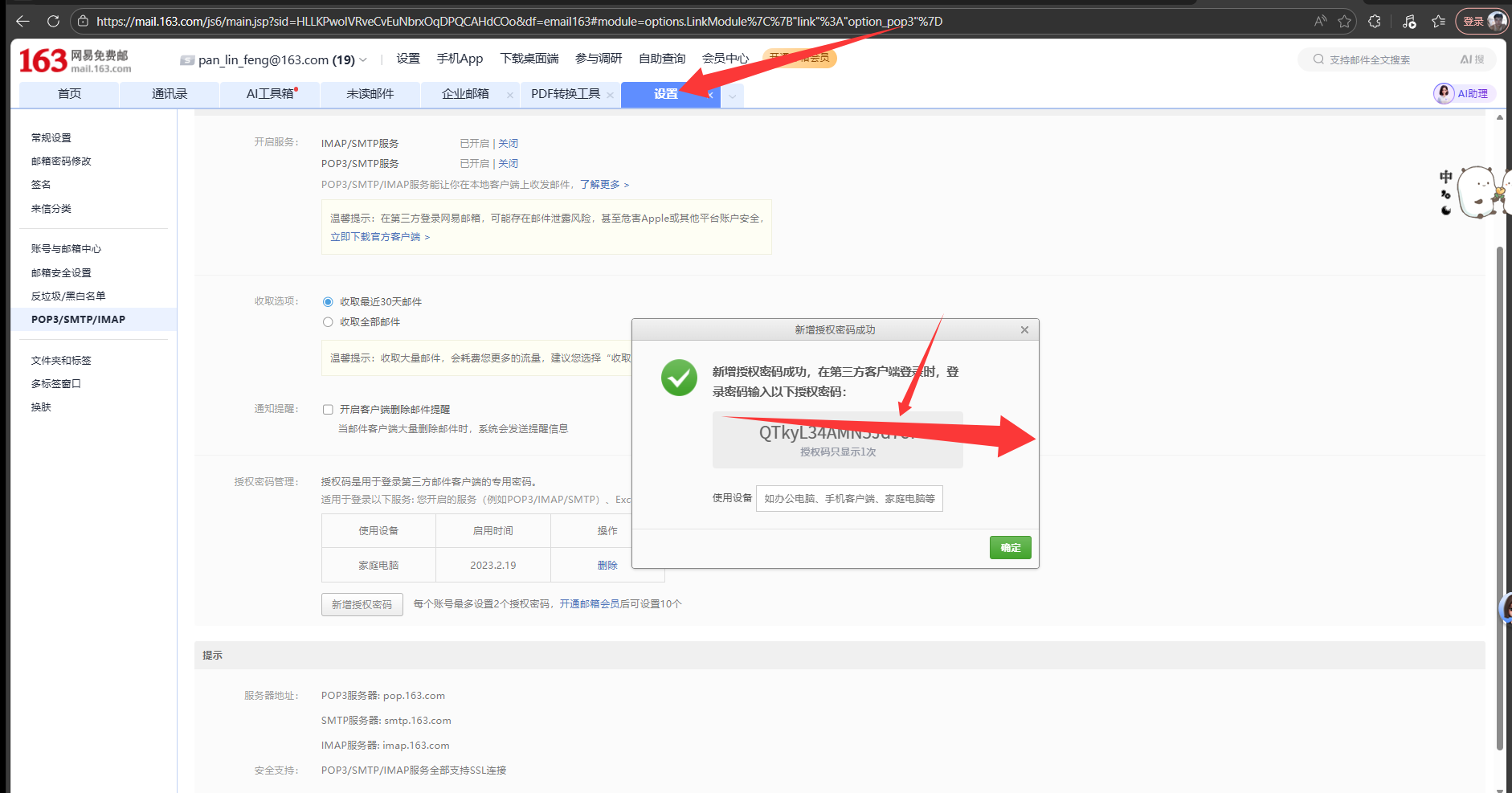 获取邮箱授权码