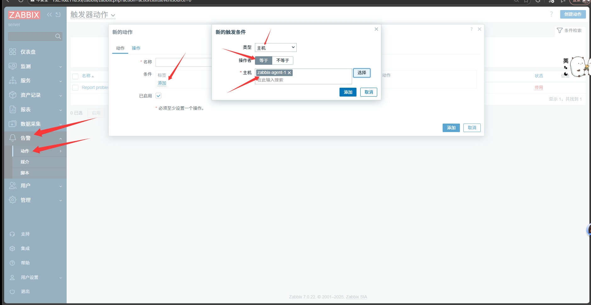 设置动作,添加目标主机