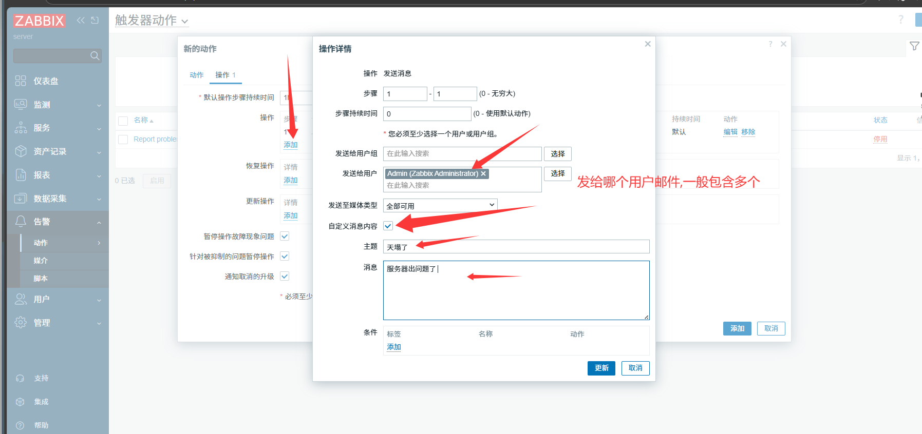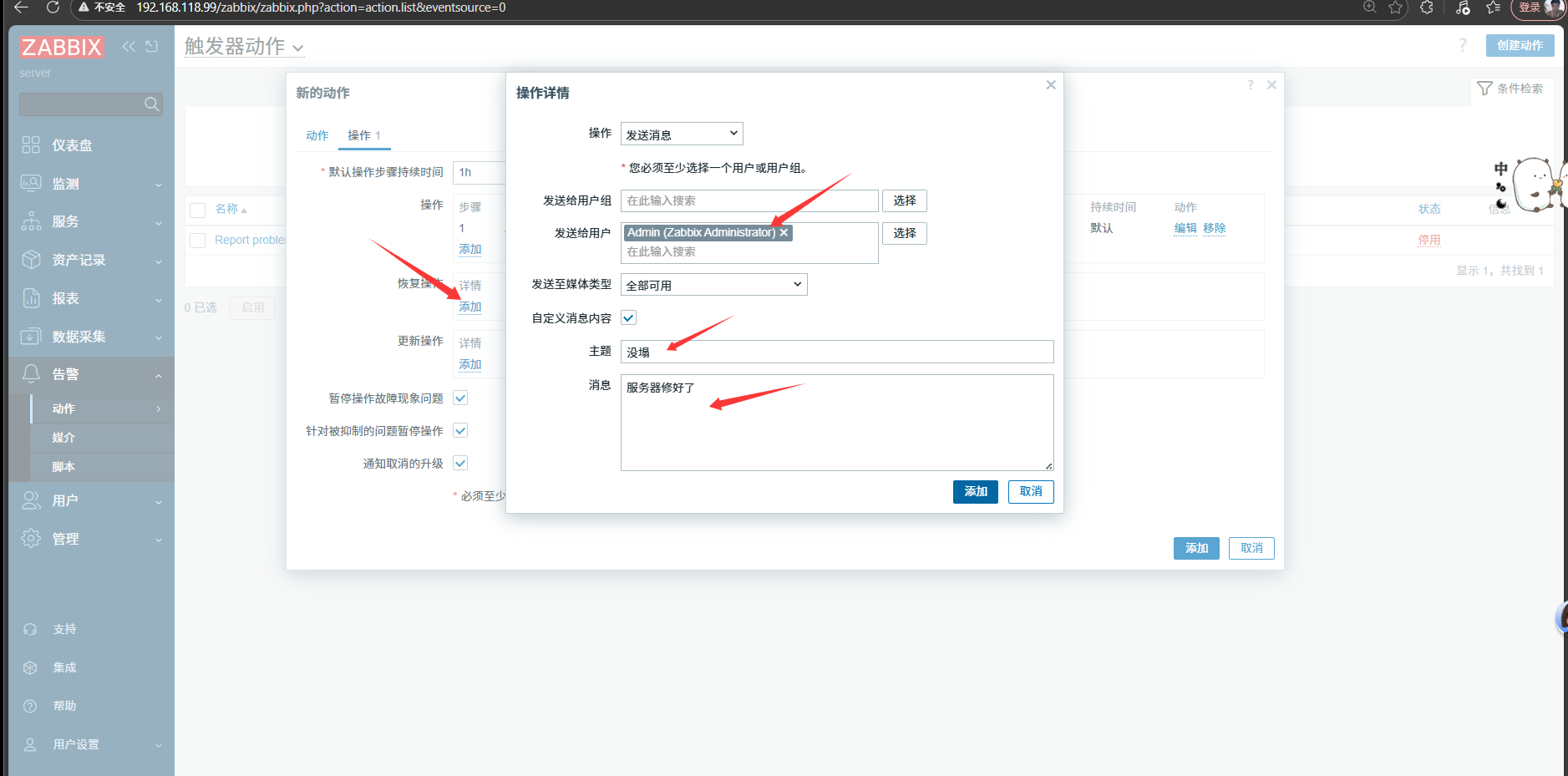 设置当故障恢复后,触发邮件