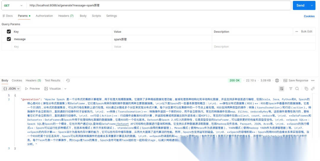 * curl验证: curl --location 'http://localhost:8089/ai/generate?message="springboot ai 是什么?"'