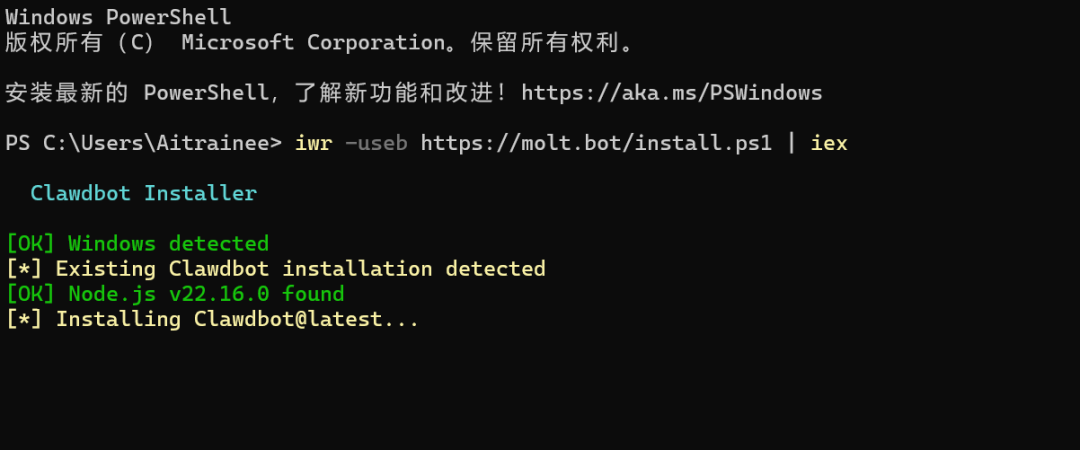 iwr -useb https://molt.bot/install.ps1 | iex