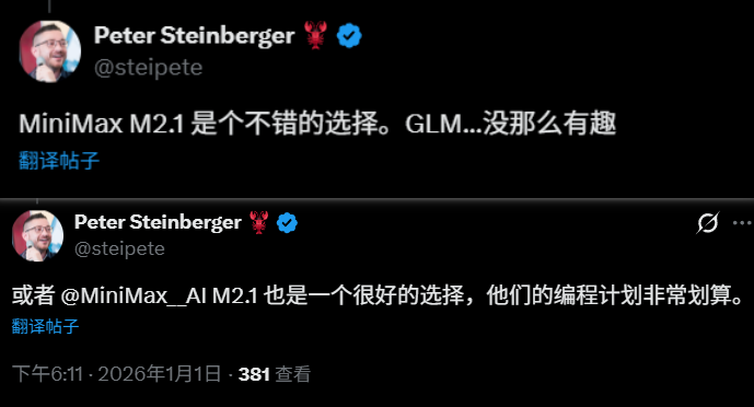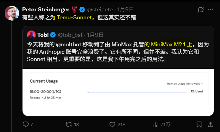 Clawdbot 作者 Peter 来了一句离谱的形容:Temu-Sonnet (拼多多版 Sonnet,但性能确实不错)