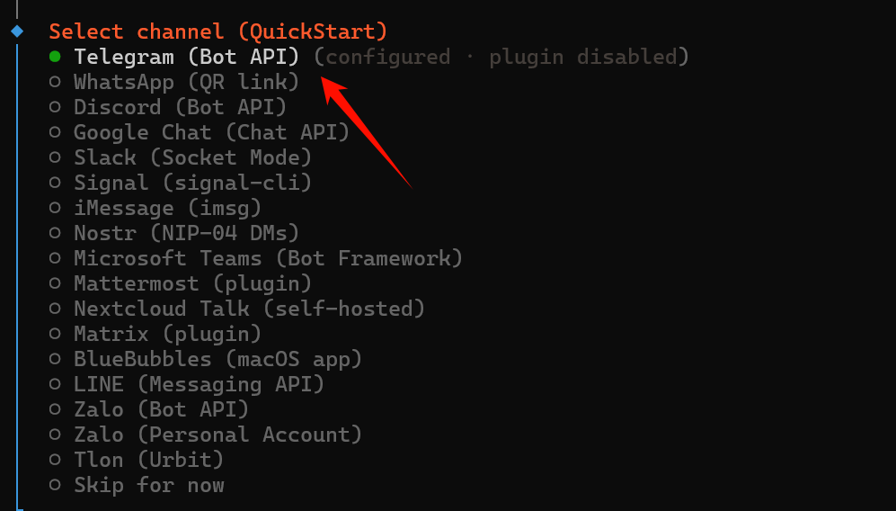 Clawdbot 支持许多提供商。你即便不选,他后面也有一个终端和网页可以对话。但我还是选择 Telegram,以便我能随时随地使用手机,安排他做任务。