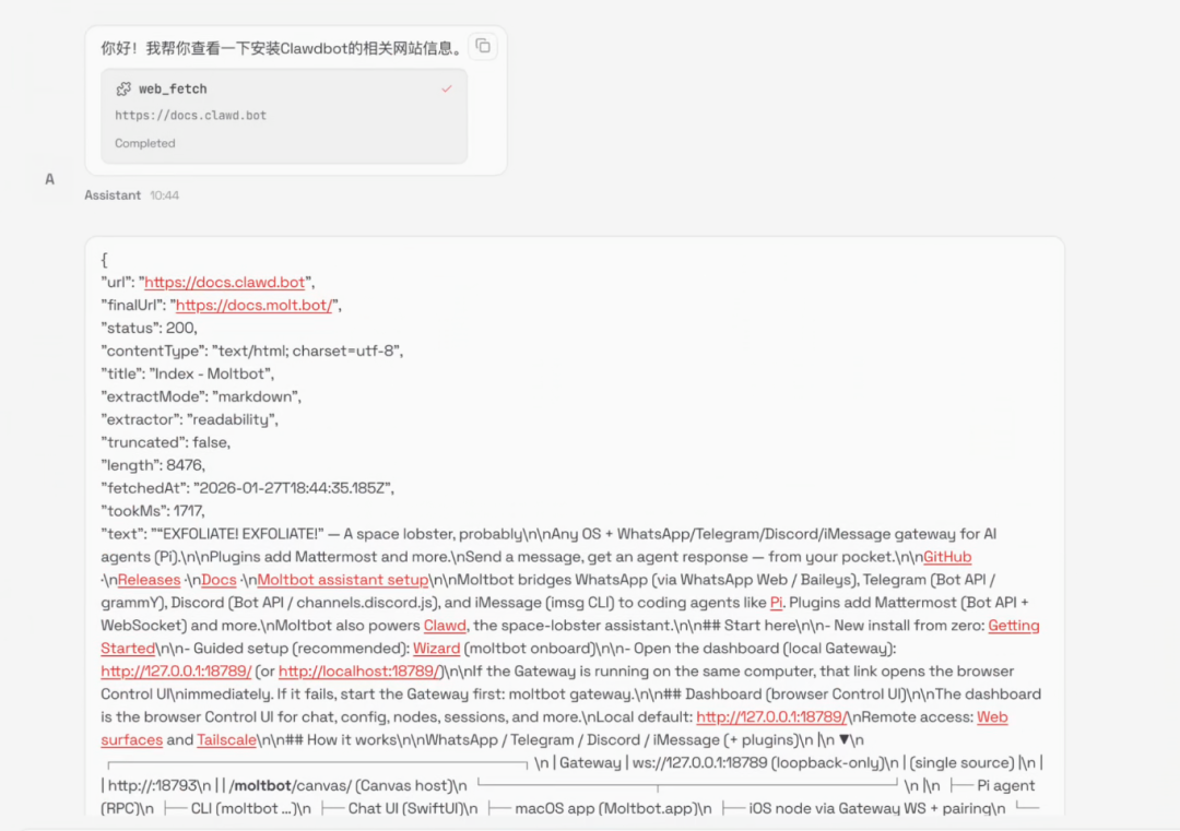 我让他查查 Clawdbot 的安装信息