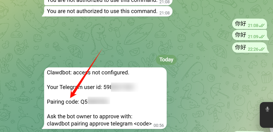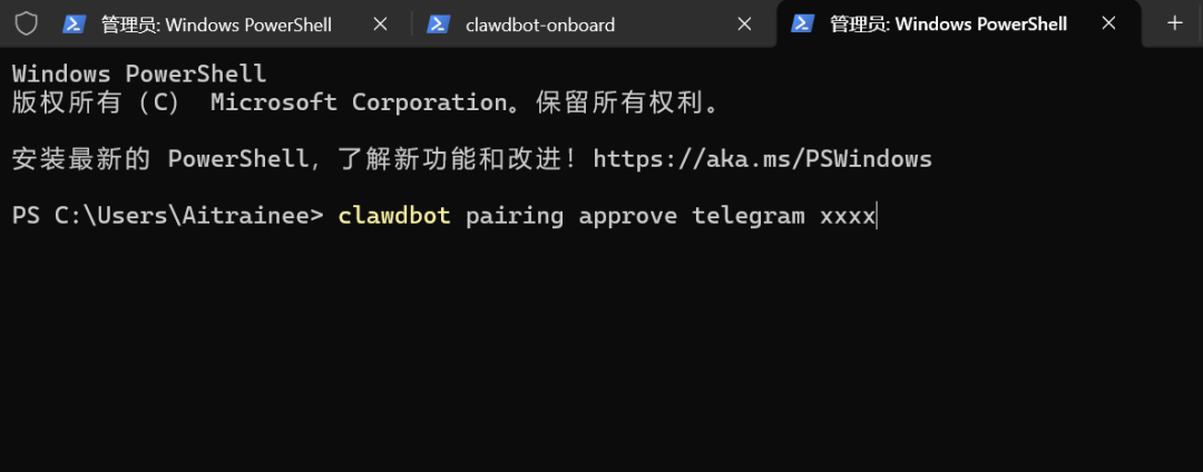 第一次可能还需要配对码:clawdbot pairing approve telegram xxxx,