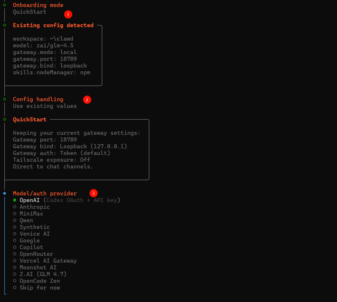 使用的时候我的一些经验:就是你首次引导结束之后下次打开的时候,为了避免错误,你可以先关掉它的网关,然后再重新进入配置以此修改模型什么的。