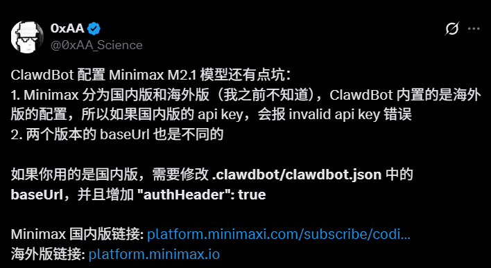 另外关于配置的一些问题,就是 ClawdBot 是一个主要支持国外生态的项目,所以在模型配置上需注意这个问题: