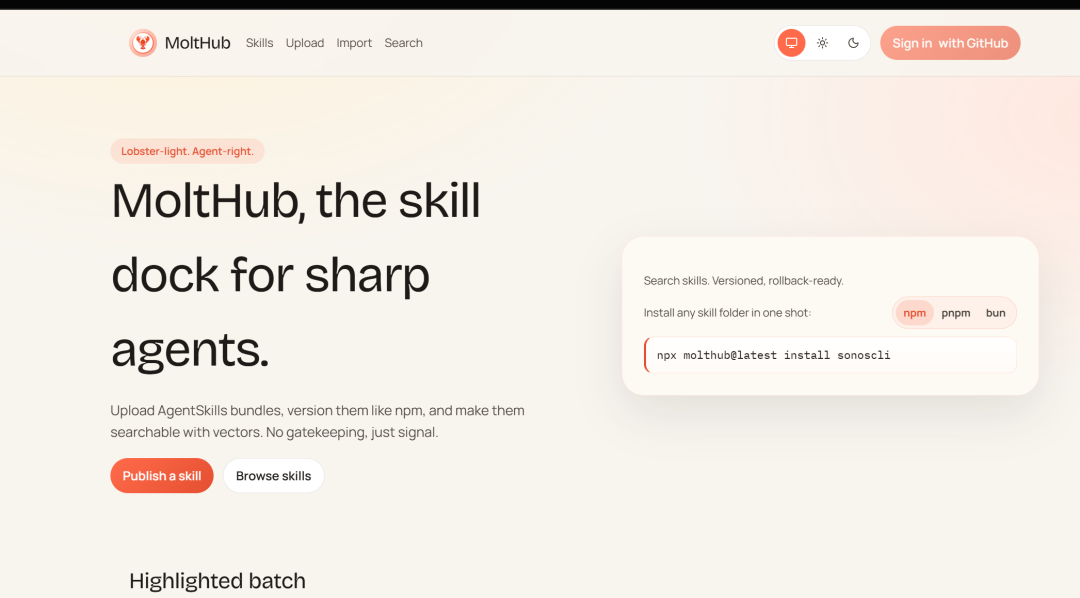 他自己还有一个官方网站,汇聚了很多 skills:https://clawdhub.com/skills