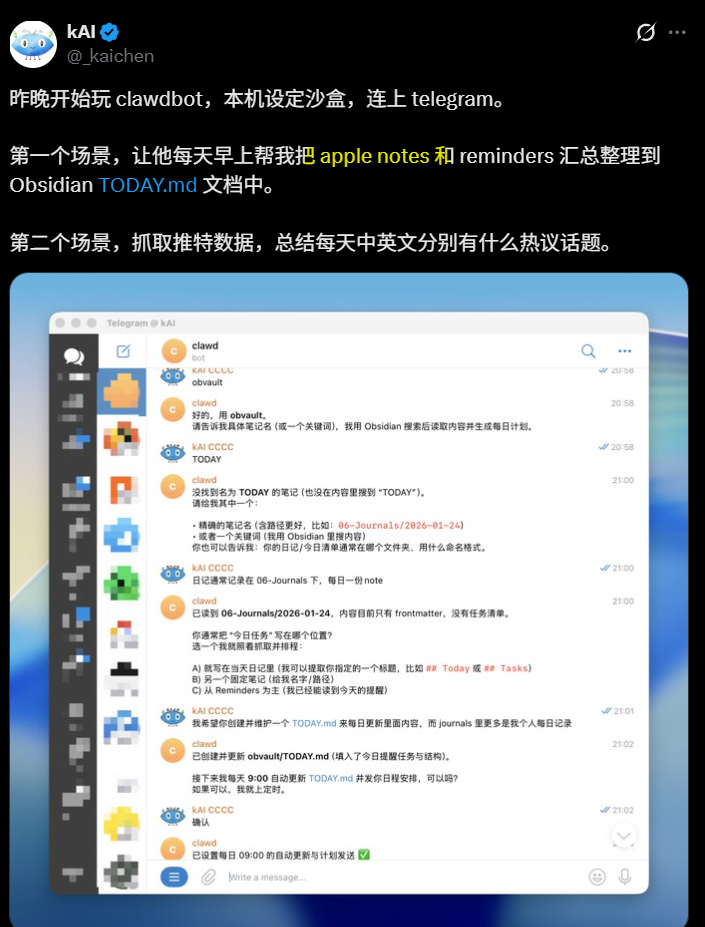 有人让 Clawdbot 给自己的宿主机电脑长了张脸,这个挺好玩的。我后面也试试。