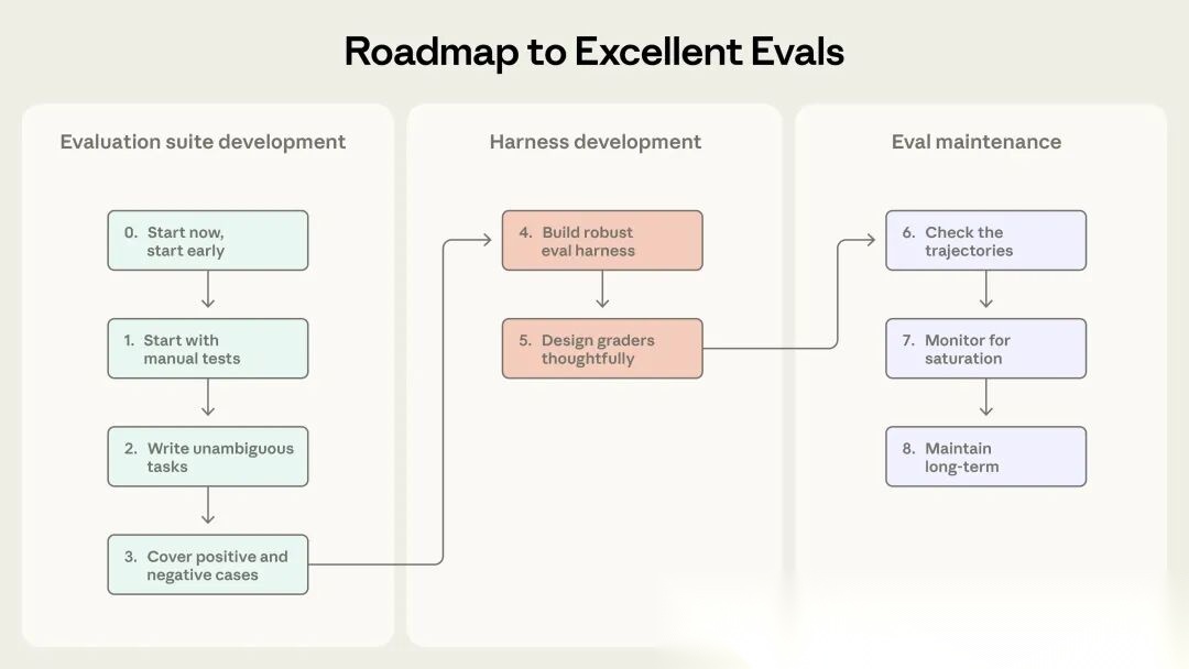 - • 8步实施路线图:从20-50个真实失败案例起步,不要等"完美套件"