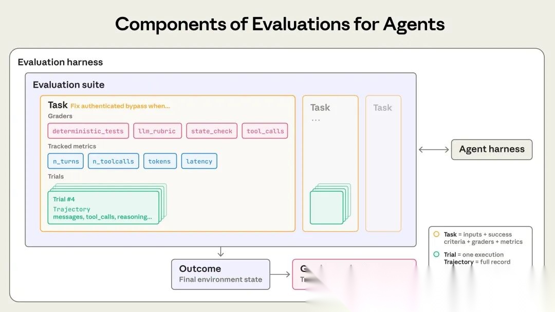 Agent 的输出是概率性的,一次成功可能是运气,一次失败可能是偶然。所以 Anthropic 引入了多次试验的概念——只有在大数定律下,Agent 的真实稳定性才会显露原形。