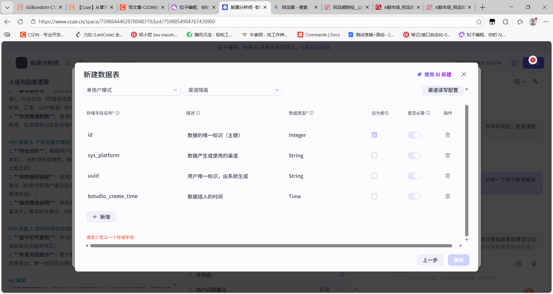 我们可以添加一些字段,然后通过自然语言实现数据添加;