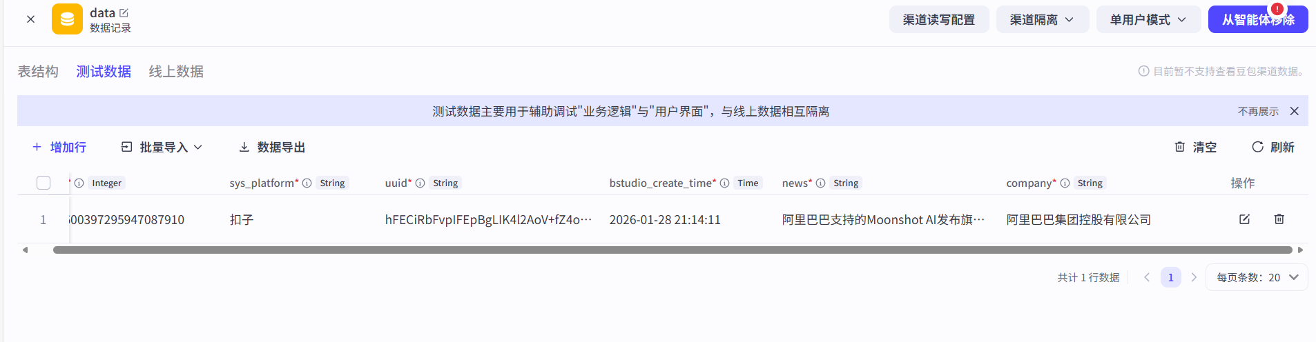 ◦ ⽀持直接在Coze平台界⾯上⼿动输⼊⽂本或表格数据。