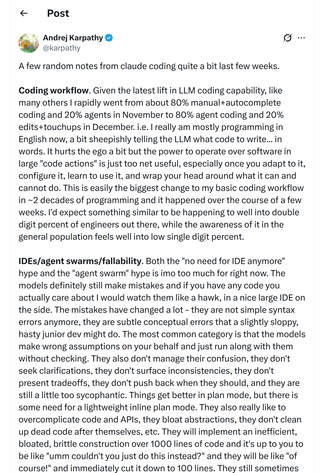 来自 Andrej Karpathy 的提醒:未来的程序员分两种:会用 AI 写代码的,和被淘汰的