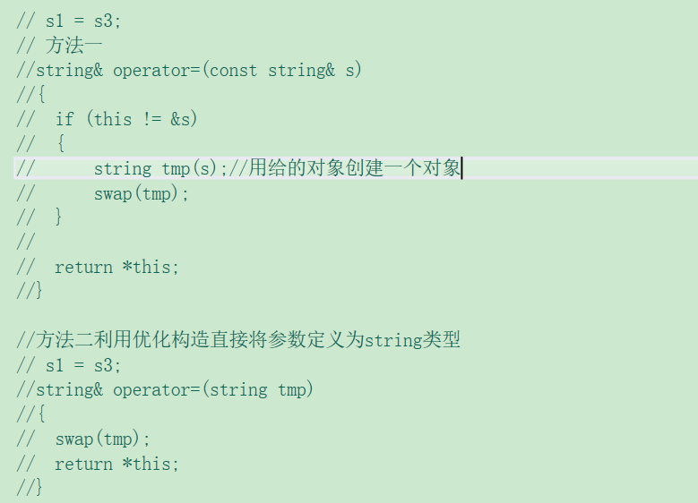 1.3.2现代写法:核心在于:将拷贝数据的工作交给别人来做,最后调用交换函数(swap()),将结果互换一下即可【能不自己做就不自己做】