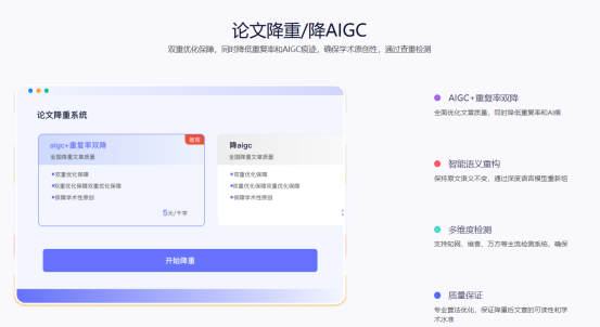 更为重要的是,系统明确承诺“保证专业性,不口语化,不散文化”,确保降重降AIGC率后的内容依然保持学术文本的严谨性,不会出现逻辑混乱或表达口语化的问题,从根本上保护了学术论文的质量。