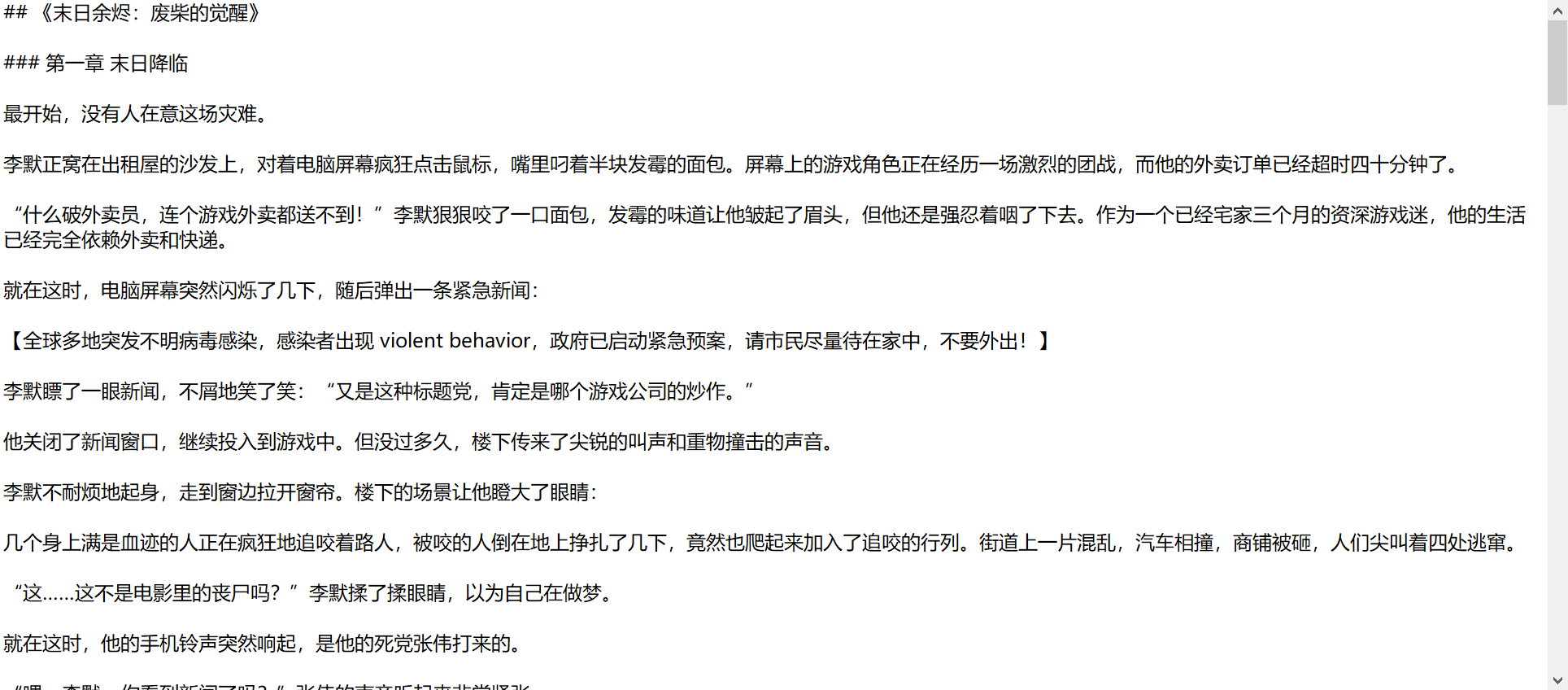 3. 输入我想要写的小说主题"写一本小说,主题是末日来临,废柴男主拯救了世界"。
