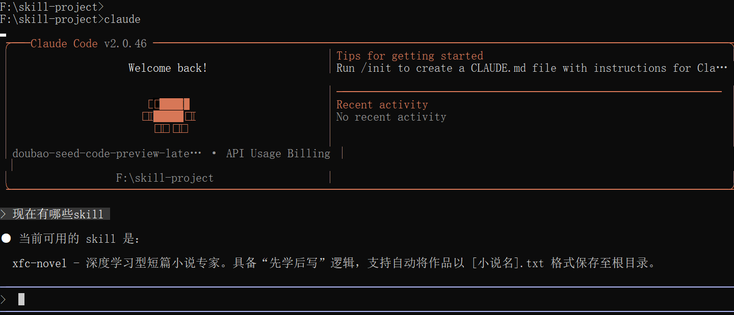小说生成skill搭建完毕了,现在就给大家来使用和测试一下。