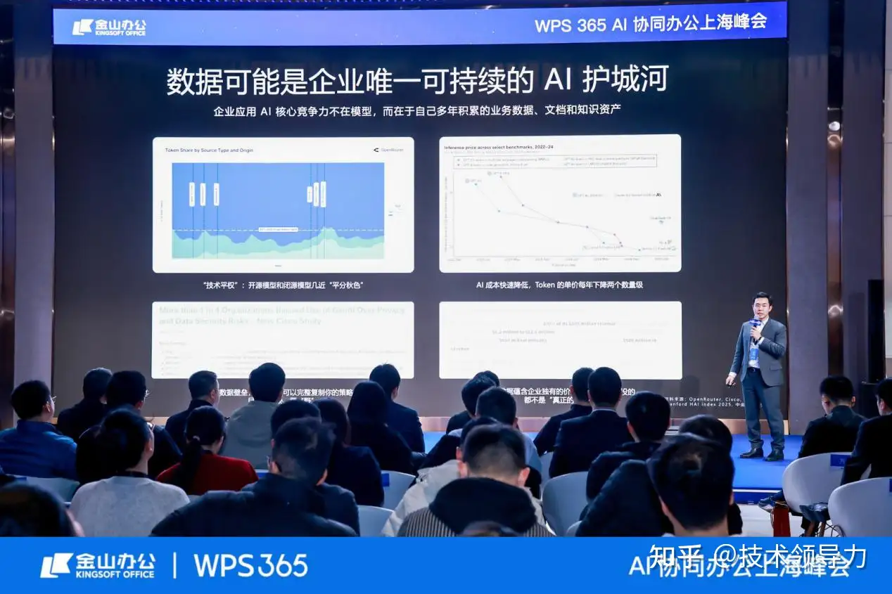 在1月27日的WPS 365 AI协同办公上海峰会上,中金公司研究部执行总经理、计算机行业首席分析师于钟海抛出了一个引人深思的观察:顶尖AI实验室的模型更新周期已缩短至数月。这意味着,企业试图通过自研或深度绑定某一模型来建立竞争优势,不仅成本高昂,且“保鲜期”极短。他提出了一个关键断言:数据才是AI时代企业唯一可持续的护城河。这一观点折射出一个行业共识——企业级AI的竞争重心,正在从“比拼模型有多聪明”,全面转向“比拼数据治理有多深”。