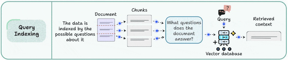 - 查询索引:你为每个块提前生成“问题”,索引存的是问题向量,查询时找最像的问题。