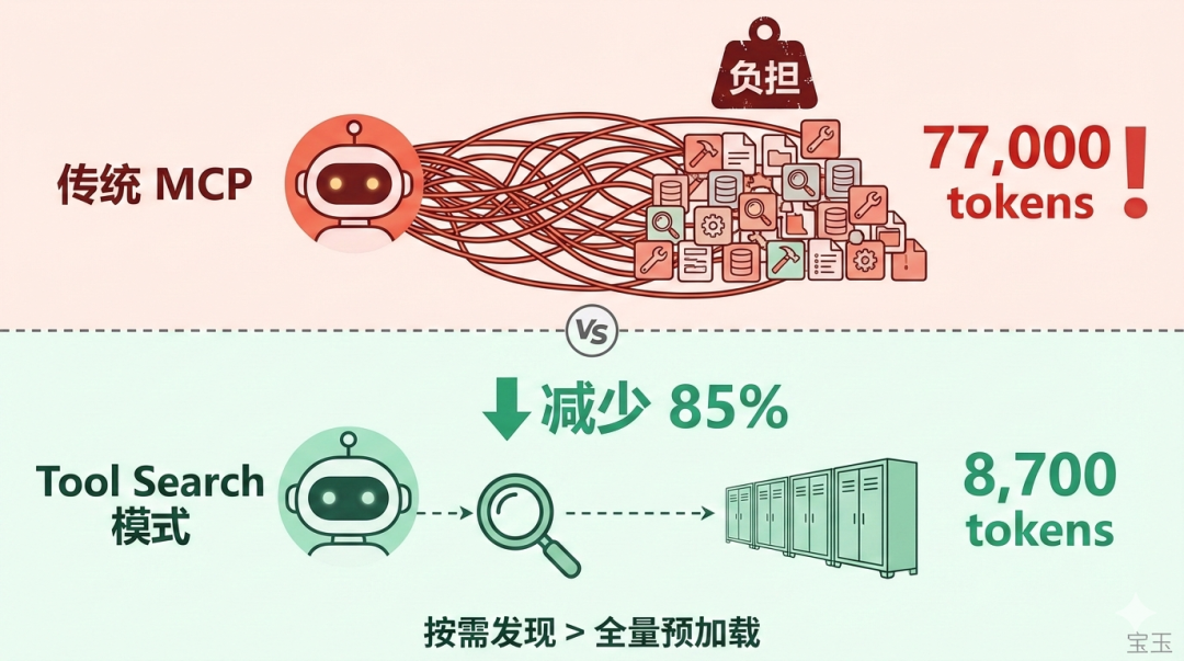 - • MCP 工具不再预加载,而是按需发现