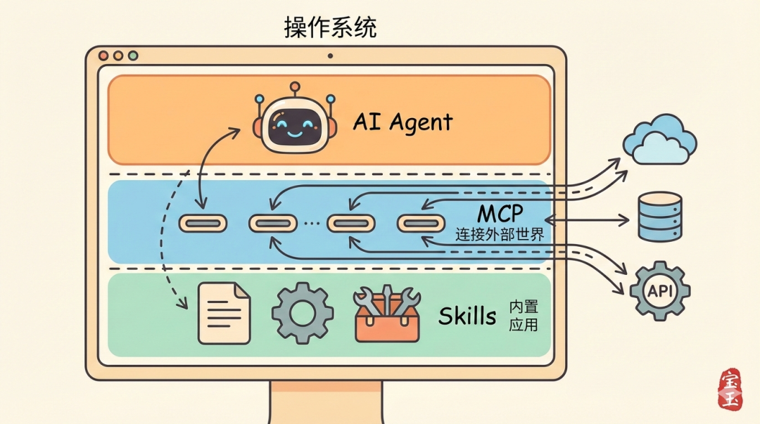 一句话解释 MCP 和 Skills 的区别:如果 AI Agent 是操作系统,MCP 就是 USB 协议,Skills 就是应用程序。
